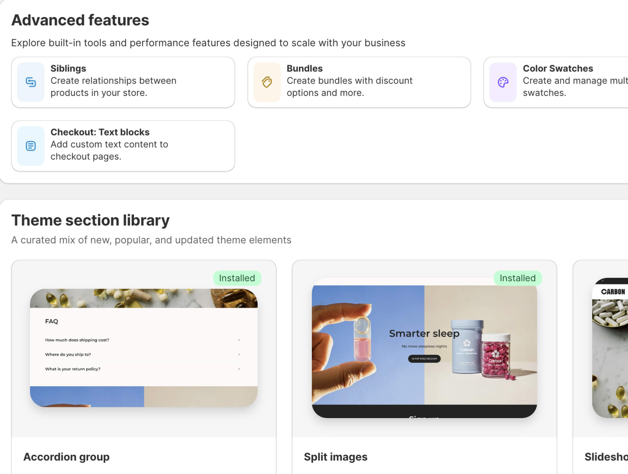 The Carbon app lives works alongside the theme to provide core embedded features without needing extra apps or custom scripts.