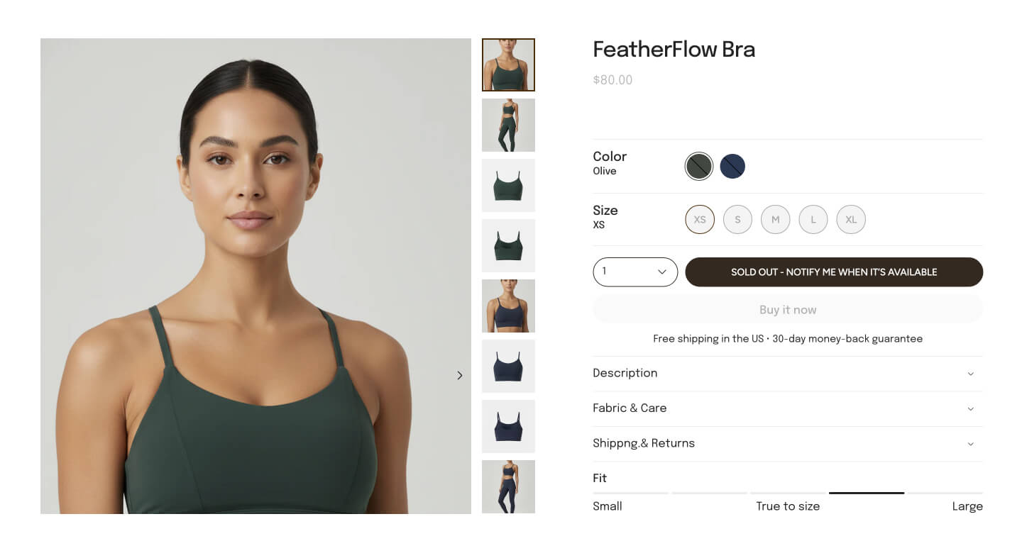 Klaviyo-powered. Let users request an alert when an out-of-stock product is available.